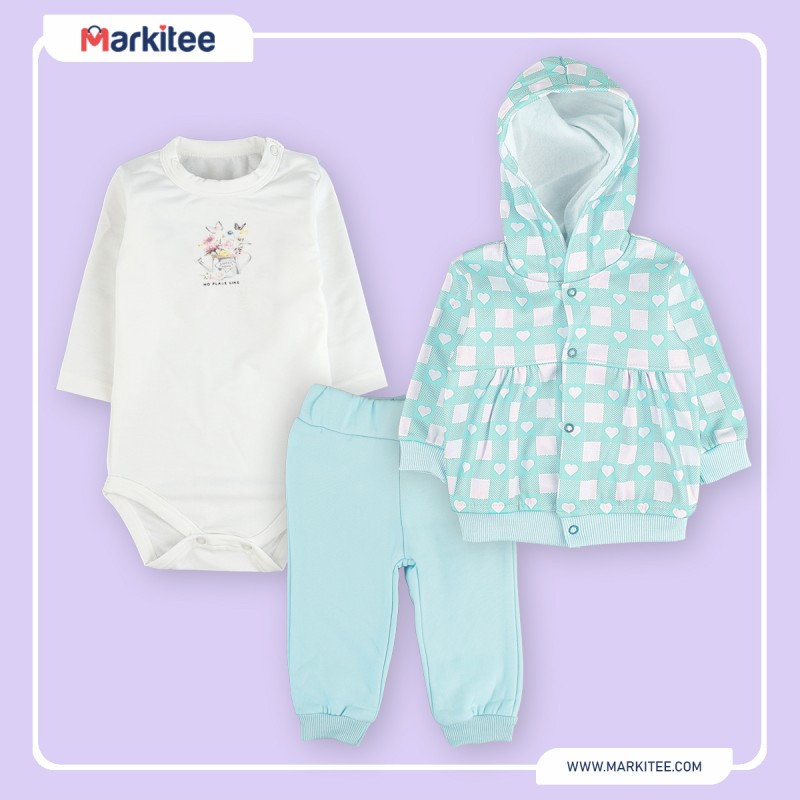 دعي طفلك يستمتع بالاستكشاف بأناقة مع هذا الطقم الرائع و المثالي للراحة واللعب. يتكون الطقم من ثلاث قطع تشمل جاكيت مشجر، وتي شيرت بطبعة مرحة، وسروال متناسق، مما يجعله خيارًا رائعًا للأيام العادية والمغامرات الخارجية.تصميم لطيف في الأمام، ليضيف لمسة من المرح إلى ملابس طفلك.