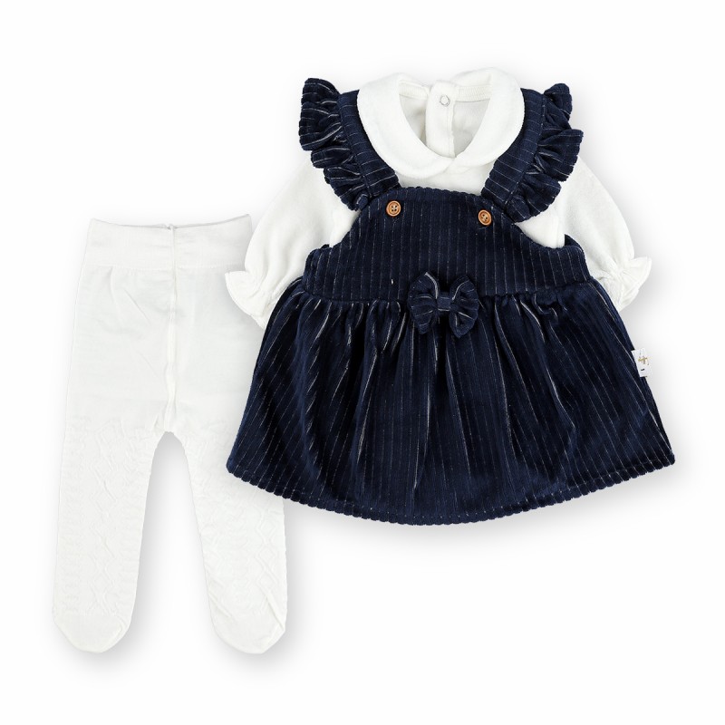 فستان شتوي 3 قطع , لون كحلي في أبيض , مقاس 9-12شهر