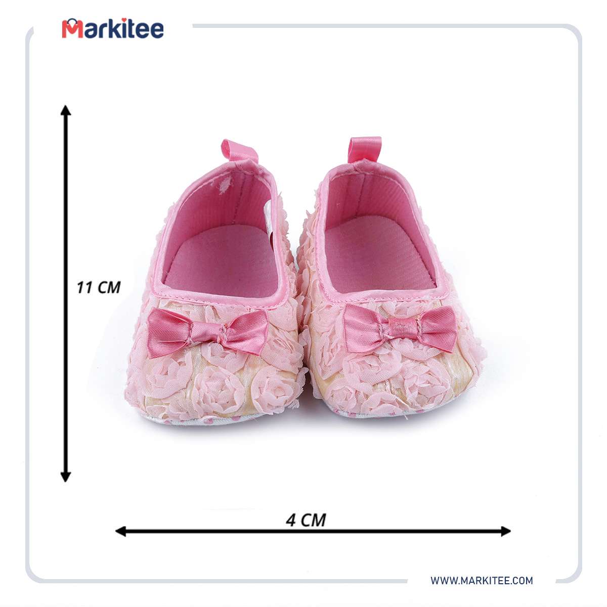 مقاس 6-9 شهور - حذاء بناتى فيونكة و مزين بالورود الجميلة - مقاس 17 - لون بينك