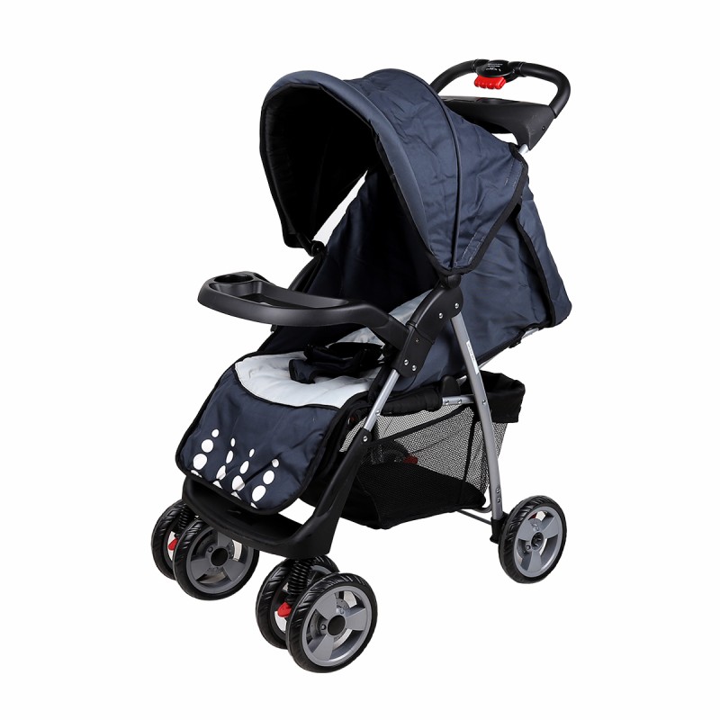 A light stroller suitable for children from the age of one month to five years and more It features a large, padded seat and a frame made of durable reinforced steel It features a backrest that can be reclined into multiple positions, including bed mode, and an adjustable footrest You can open and close it with one hand in the upright position It has a storage basket and you can access it easily In addition to a safety belt on the front armrest, made of high-quality fabric that is removable and washable in the washing machine It features large anti-puncture wheels with a stop system and a five-point safety belt Hood can be opened for back ventilation Product dimensions: 97*40*110 cm Maximum weight recommendation 30 kg Material: polyester metal Fabric type: High-quality lining made of high-density sponge and polyethylene fabric