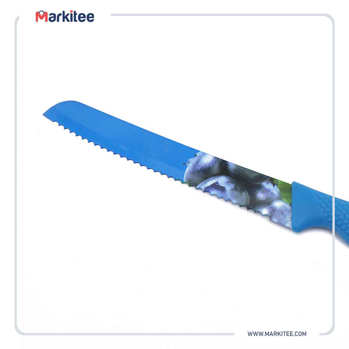 Kitchen knife serrated blade with rubber handle - blue